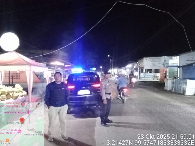 Melaksanakan Patroli guna mengantisipasi terjadinya gangguan Kamtibmas sehingga memberikan rasa aman bagi masyarakat di Wilkum Polsek Labuhan Ruku, Kamis (23/10/2025) pukul 23.00 WIB hingga selesai