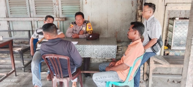 Bhabinkamtibmas Aiptu Purwanto dengan menyambangi warga di Desa Pulau Sejuk Kec.Datuk Limapuluh Kab Batubara, Sabtu (3/2/2024).