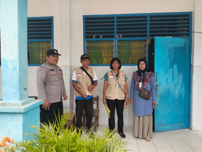 Bhabinkamtibmas Polsek Limapuluh Aipda Elijon Manurung melaksanakan cooling system dalam hasil dan penghitungan usai pemilihan pilpres, pileg di TPS Wilayah Desa Simpang Dolok kec.Datuk Limapuluh Kab Batubara, Sabtu (17/2/2024)
