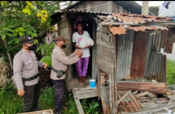 Polsek Labuhan Ruku yang dipimpin AKP Syafii, beserta anggota memberikan bantuan sembako kepada Ari (32) warga Dsn Pinggir Sungai Desa Nenassiam Kec. Medang Deras, Ibu Luli (35) warga Dsn Pinggir Sungai Desa Nenassiam Kec. Medang Deras, Ibu Madianum , (65) warga Dsn Pinggir Sungai Desa Nenassiam Kec. Medang Deras.