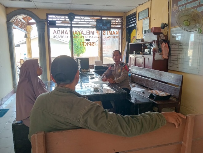 Personil Polsek Medang Deras, Aipda Erdi melaksanakan cooling system jelang Pemilu 2024 di Kelurahan Pangkalan Dodek Baru Kec.Medang Deras Kab Batubara, Minggu (11/2/2024)