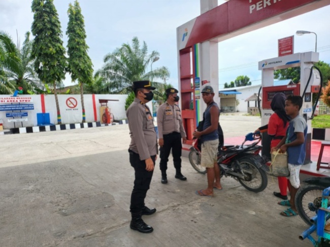 Kedua perasonil menyambangi sejumlah obyek vital menggunakan kenderaan R4 diantaranya di jalan Ahmad Yani Pagurawan Sore, SPBU, para pedagang sembako.