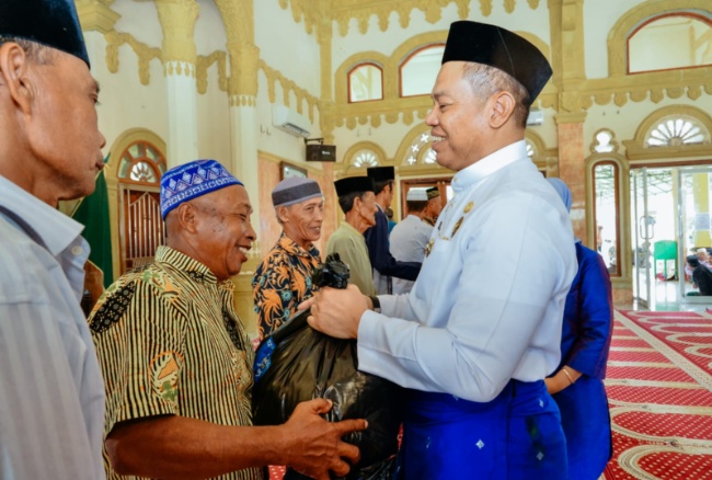 Usai sholat jumat, sebanyak 250 paket sembako diberikan oleh Penjabat (Pj) Bupati Batubara Nizhamul, S.E., M.M., bersama Komandan Brigade Infanteri (Brigif) 7/Rimba Raya (RR) Letkol Inf. Aidil Amin beserta Forkopimda Batubara.