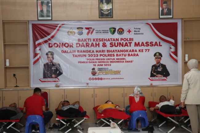 Sambut HUT ke 77 Bhayangkara Polres Batubara melaksanakan bakti kesehatan donor darah dan sunat massal.