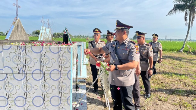 Dalam rangka HUT Ke-79 Hati Bhayangkara Polres Batubara ziarah dan tabur bunga ke makam Ipda Anumerta Martua Sigalingging di Desa Suka Ramai Kec. Air Putih, Senin (23/6/2025) pagi