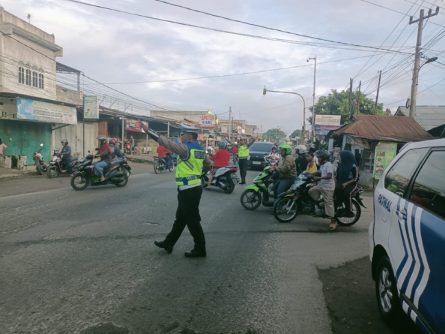 Personil Sat Lantas Polres Batubara kembali melaksanakan pengaturan lalin, Rabu (26/11/2025) pukul 07.00 WIIB hingga selesai.