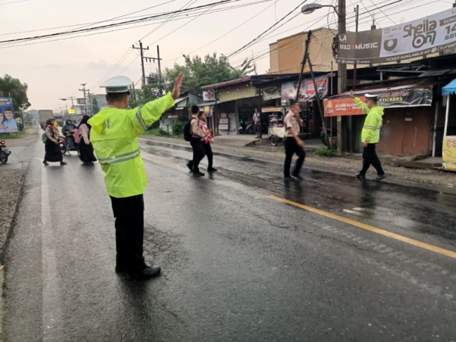 Selain melakukan pengaturan lalulintas dan menindak prlanggar lalulintas, petugas juga mengimbau kepada pengendara sepeda motor agar selalu mematuhi peraturan Lalulintas dan tetap menggunakan HELM SNI.