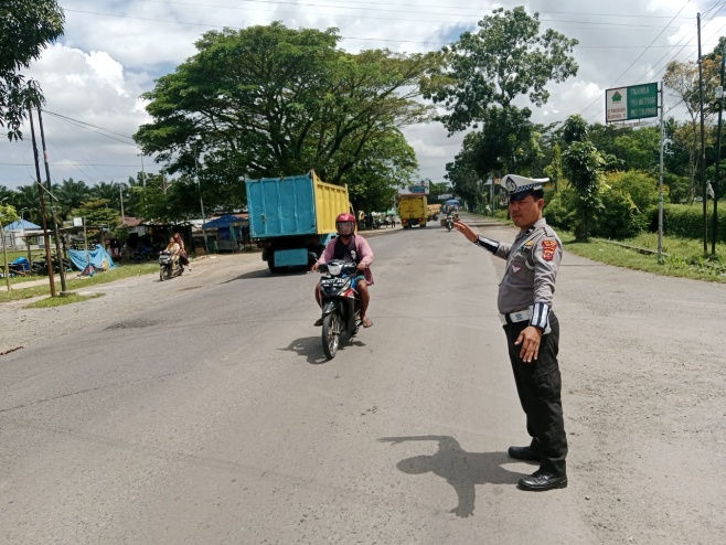 Personil Sat Lantas Polres Batubara kembali melaksanakan kegiatan pengaturan lalulintas, Sabtu (26/4/2025 ) pukul 11.30 WIB hingga selesai