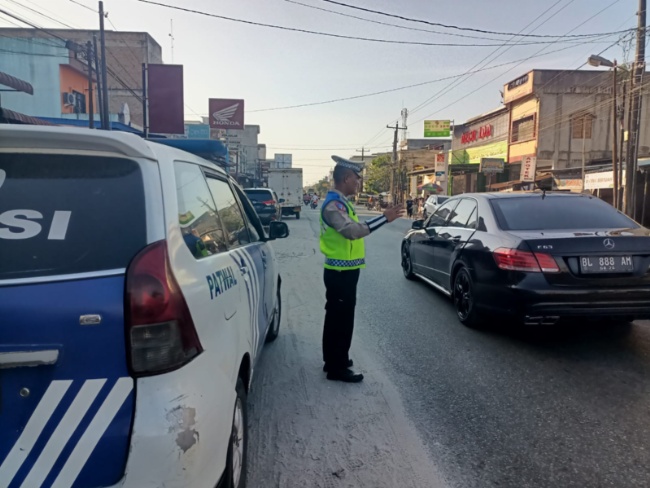 Sementara personil lainnya Aiptu Sartono melakukan giat gatur sore antipasi kemacetan di jalinsum Sei Bejangkar pada pukul 17.00 WIB.