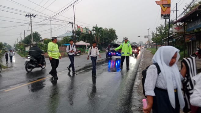 Di lokasi tersebut personil Sat Lantasb melaksanakan pengaturan arus Lalu Lintas serta tindakan kepolisian terhadap pelanggaran lalu lintas yang kasat mata.