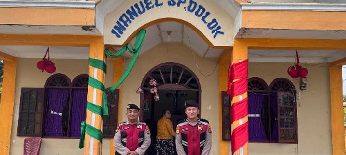 Personil Sat Sabhara Polres Batubara melakukan pengamanan Gereja di wilkum Polres Batubara, Minggu (4/1/2026) pukul 10.00 WIB hingga selesai