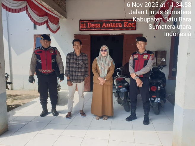Dua personil Sat Sabhara Polres Batubara laksanakan patroli sambangi dua Desa di Kecamatan Limapuluh Kab. Batubara, Kamis (6/11/2025) pukul 12.00 WIB.