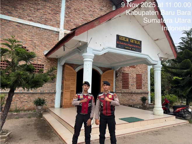 Personil Sat Sabhara Polres Batubara laksanakan patroli dan pengamanan Gereja di wilkum Polres Batubara, Minggu (9/11/2025) pukul 11.00 WIB hingga selesai.