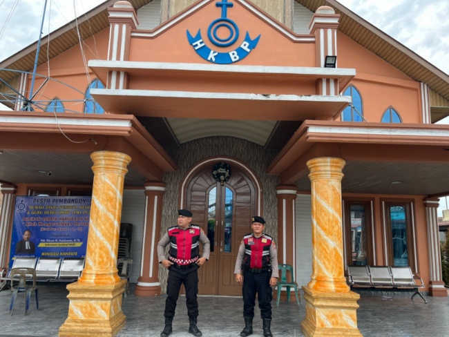 Personil Sat Sabhara melakukan pengamanan di GerejaBATUBARA