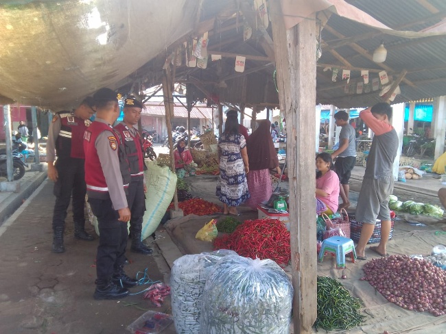 Personil Sat Samapta melaksanakan Cooling System kepada warga dan pedagang di Pajak Tradisionil Limapuluh Kota Kec. Limapuluh, Kamis (19/6/2025).