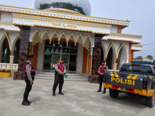 Personil Sat Samapta Polres Batubara melaksanakan pengamanan di Masjid di wilkum Polres Batubara, Jumat (27/6/2025) pada saat salat Jumat berlangsung