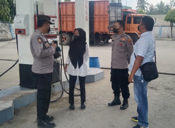 Personel Sat Mapta terlihat berbincang dengan pegawai di SPBU