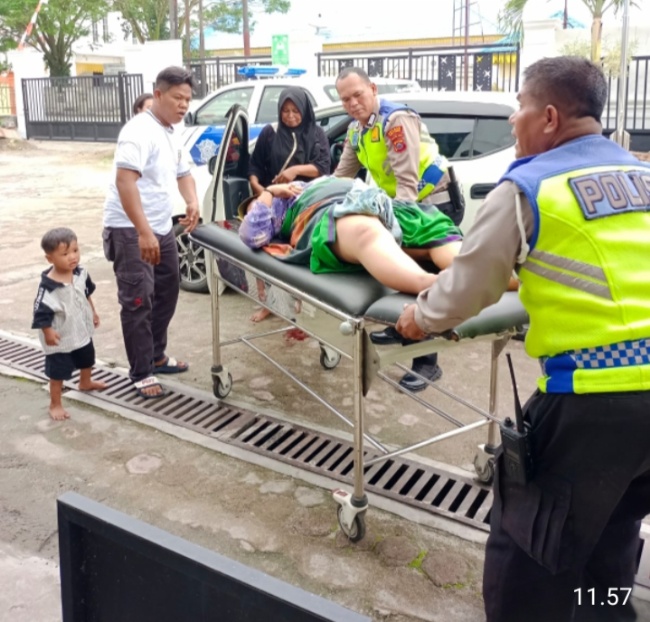 Melihat hal tersebut personil Satlantas Polres Batubara dengan gerak cepat memberikan pertolongan dengan membawanya ke Puskesmas Limapuluh.