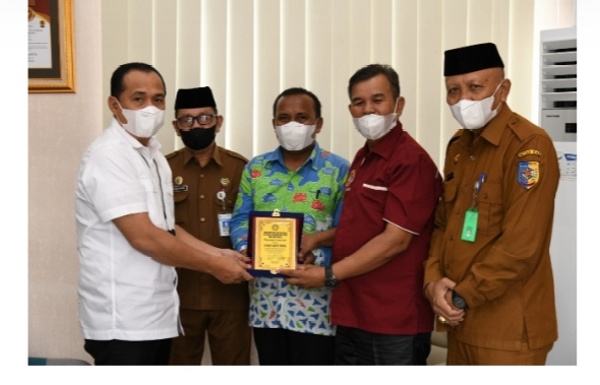 Ketua PGPI Batubara Pendeta P Sitompul memberikan Plakat kepada Bupati Batubara Zahir