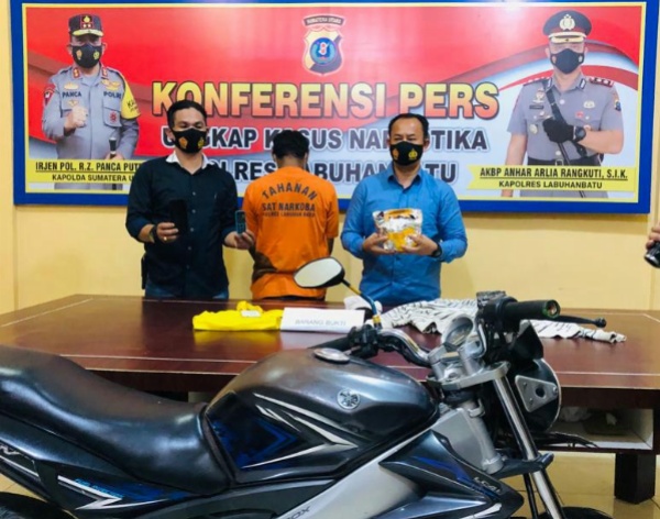 LABUHANBATU (mimbarsumut.com) –Seorang pemuda pengangguran Riski Lesmana Siregar yang merupaka warga kampung Banjar, Kota Pinang, Kabupaten Labuhanbatu Selatan berhasil diamankan Satres Narkoba Labuhanbatu.