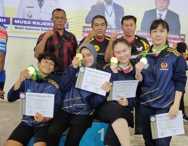 Kali ini medali emas dipersembahkan Atlet Persatuan Tenis Meja Seluruh Indonesia (PTMSI) Kabupaten Labuhanbatu yakni, Stevany, Silvia Warsono, Putri Syabila dan Rasya Auli.