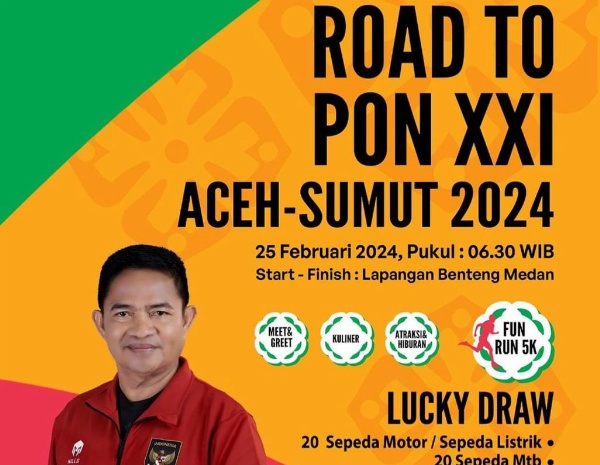 Fun Run Road to PON XXI yang akan berlangsung pada hari Minggu pagi, tanggal 25 Februari 2024 ini mendapat perhatian serius dari Pj Gubernur Sumut. “Kegiatan ini adalah salah satu strategi Pemprov Sumut untuk mempromosikan dan menggaungkan PON Aceh-Sumut,” kata Hassanudin, Penjabat (Pj) Gubernur Sumut di Medan, Sabtu (24/2).