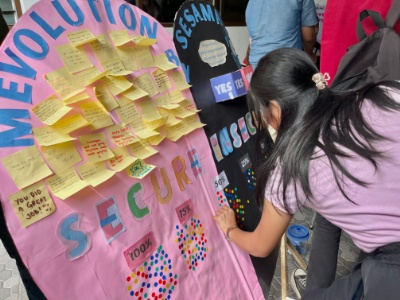 Selain itu, peserta juga diajak menuliskan perasaan dan hambatan pribadi melalui expression dan rating wall serta memberi pesan pada diri sendiri lewat confession box.