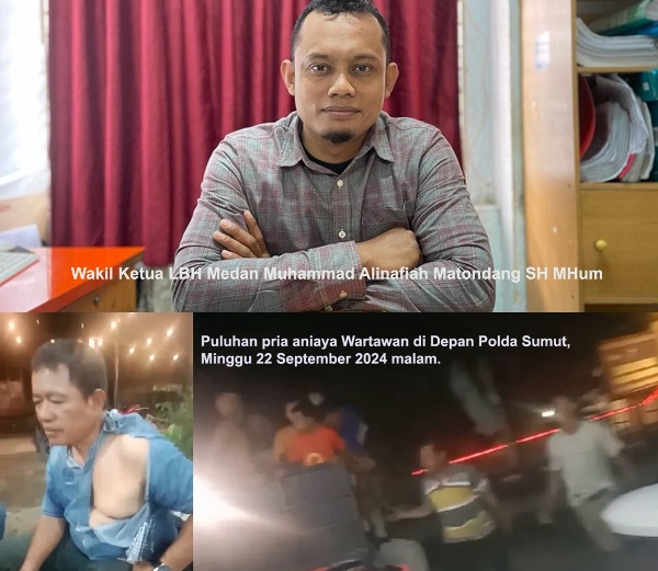 Diberitakan, Puluhan pria diduga pelindung penyelewengan Bio Solar memukuli wartawan salah satu media Medan bernama Irwansyah di depan Markas Kepolisian Daerah (Polda) Sumatera Utara, Minggu (22/9/2024) malam.