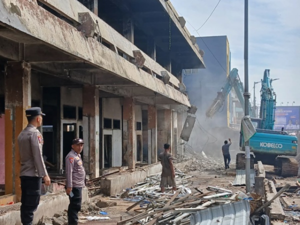 P. SIANTAR (mimbarsumut.com) – Polres Pematangsiantar melalui persoil IPDA Revanto Barasa SH, AIPTU Edi Syahputra, AIPDA A. Sinulingga, AIPA Saut M. Tua Manurung dan BRIPKA Ricky Van Fauzy menggelar patroli kegiatan pembongkaran Gedung IV Pasar Horas, Jalan Merdeka, Kelurahan Dwikora, Kecamatan Siantar Barat Kota Pematangsiantar, pada Kamis 9 Oktober 2025 pagi pukul : 09.00 Wib.