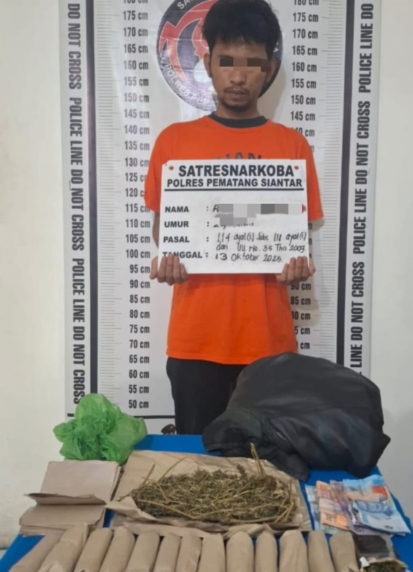 P. SIANTAR (mimbarsumut.com) – Satuan Reserse Narkoba Polres Pematangsiantar berhasil mengungkap dan menangkap seorang pemilik barang haram dengan berat bruto 230 gram narkotika jenis ganja di Jalan Medan Gang Air Bersih Kelurahan Naga Pitu Kecamatan Siantar Martoba Kota Pematangsiantar, Senin malam 13 Oktober 2025.