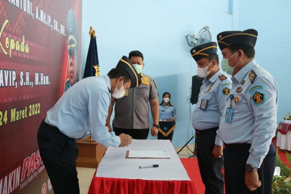 Pelantikan sekaligus sertijab dilaksanakan, Kamis (24/03/2022) di aula Pengayoman Kapalas Kelas II A Pematangsiantar. M Tavip menggantikan Rudy Fernando Sianturi, A.Md.IP, SH MH.