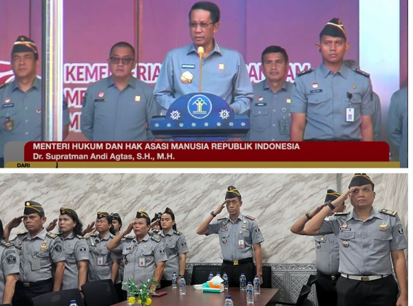 P. SIANTAR (mimbarsumut.com) – Jajaran Lapas Kelas IIA Pematangsiantar ikuti kegiatan apel pagi perdana bersama Menteri Hukum dan Hak Asasi Manusia (Menkumham) yang baru, Supratman Andi Agtas. Apel ini dilaksanakan secara virtual melalui Zoom yang berpusat di Lapangan Merah Kementerian Hukum dan HAM (Kemenkumham), Senin (26/08).