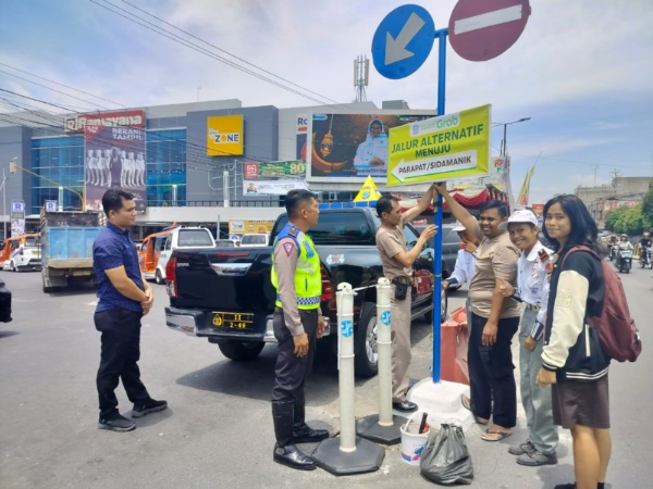 Spanduk penunjuk jalur alternatif di Jalan Sangnawaluh – S. Parman, Apil Pahlawan, Jalan Pantauan depan Pos Pam 2, Jalan Pattimuran – Simp. Jalan Pane, Jalan Melanthon Siregar – Jalan PMM Narumonda Bawah, Jalan Melanthon Siregar – Jalan Nias, Jalan Melanthon Siregar – Simp. Jalan Manunggal Karya dan Jalan Melanthon Siregar – Simp. Jalan Bahkora.