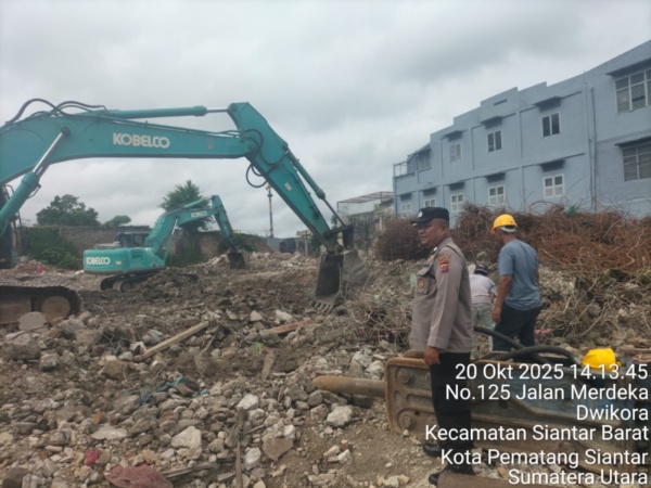 P. SIANTAR (mimbarsumut.com) – Polsek Siantar Barat Polres Pematangsiantar melalui Kasub Sektor Aiptu Edi Syahputra, SH melaksanakan patroli monitoring pembongkaran Gedung IV Pasar Horas Jalan Merdeka, Kelurahan Dwikora Kecamatan Siantar Barat Kota Pematangsiantar, pads Senin 20 Oktober 2025.