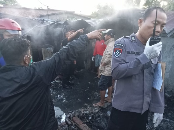 Kapolsek Siantar Barat Ipda Gagas Dewanta Aji, S.Tr.K pimpin olah Tempat Kejadian Perkara (TKP) kebakaran.