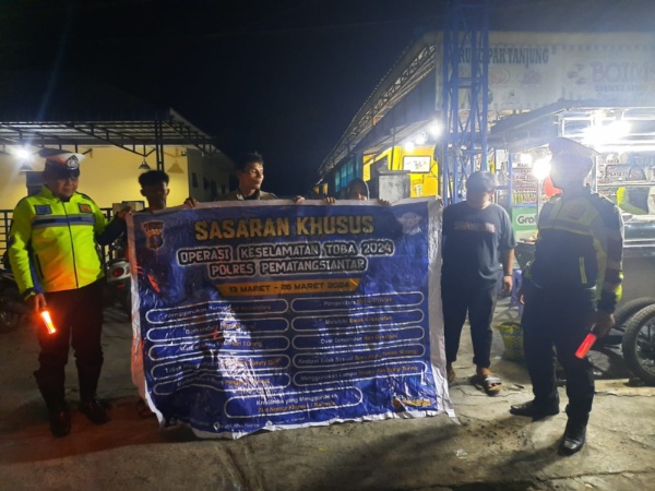 P. SIANTAR (mimbarsumut.com) – Personel Satlantas Polres Pematangsiantar melaksanakan kegiatan sosialisasi terkait pelaksanaan Operasi (Ops) Ops Keselamatan Toba 2024 di jalan sutomo taman Adipura, Senin 18 Maret 2024 pukul 20.00 WIB.