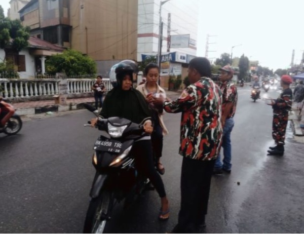 Ada ratusan bungkus kue diberikan kepada pejalan kaki, pengguna sepeda motor, pengayuh becak, serta masyarakat yang melintas diarea Jalan Ade Irma Suryani, Kota Pematangsiantar.