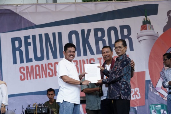 Turut hadir Ny. Harliaminda Dimiyathi, para alumni SMAN 1 Kota Tebing Tinggi dan tamu undangan.