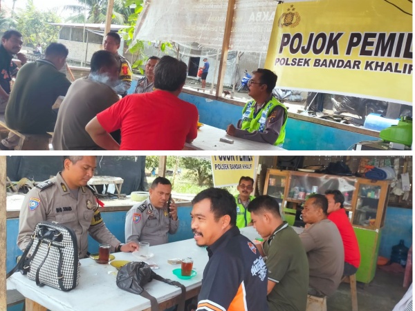 SERGAI (mimbarsumut.com) – Polsek Bandar Khalifah Polres Tebingtinggi diantaranya Kanit Binmas Aiptu Budi Ilham, Kanit Intelkam Aipda KRH. Pardede dan bhabinkamtibmas Bripka Mhd. Junaidy melaksanakan pojok pemilu di Kantor Sekretariat Panitia Pemungutan Suara (PPS) Desa Sei Serimah Kecamatan Bandar Khalifah Kabupaten Serdang Bedagai, Sabtu (09/12/23).