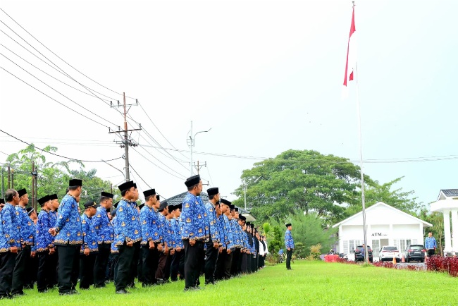 SERGAI (mimbarsumut.com) – Semangat kebangsaan terpancar dari jajaran Pemerintah Kabupaten Serdang Bedagai (Pemkab Sergai) yang tetap melaksanakan upacara peringatan Hari Kesaktian Pancasila meski diguyur gerimis sejak pagi, Rabu (1/10/2025).