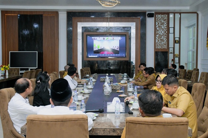 Bupati Sergai H. Darma Wijaya bersama Wakil Bupati H. Adlin Umar Yusri Tambunan mengikuti kegiatan dari Ruang Kerja Bupati di Kompleks Kantor Bupati, Sei Rampah, didampingi jajaran pejabat terkait dan tim pemeriksa dari BPK.