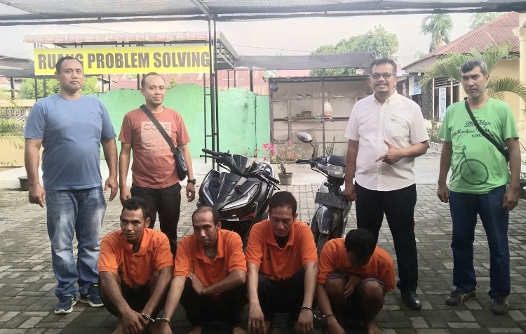 SERGAI (mimbarsumut.com) – Tim Opsnal Unit Reskrim Polsek Perbaungan Polres Serdang Bedagai (Sergai) berhasil mengungkap kasus pencurian sepeda motor yang meresahkan masyarakat. Dalam operasi tersebut, empat orang pria berhasil diamankan. Mereka diduga sebagai pelaku dan penadah sepeda motor hasil curian.