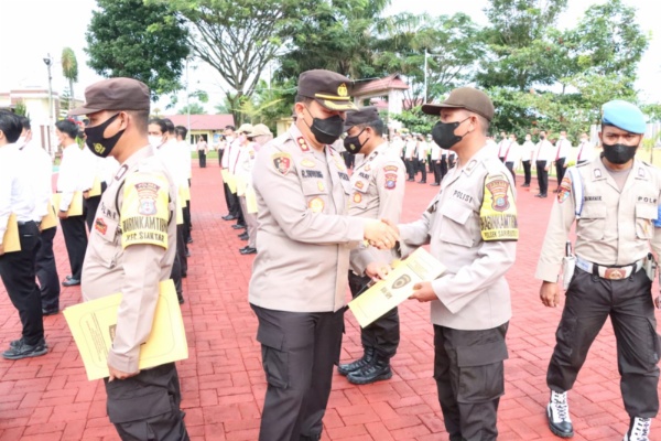 Personel yang menerima penghargaan sebanyak 38 orang, kenaikan pangkat pengabdian sebanyak 5 orang, ASN Polri yang menerima kenaikan pangkat pengabdian 1 orang.