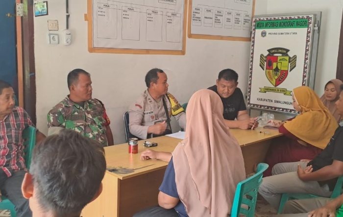 SIMALUNGUN (mimbarsumut.com) – Bhabinkamtibmas Polsek Bosar Maligas, Aipda J.S. Butar Butar, bersama Babinsa dari Koramil 07/BM, Serda J. Saragih, memediasi warga yang berselisih di kantor Pangulu Nagori Siringan Ringan, Kecamatan Ujung Padang, Kabupaten Simalungun, Sabtu (26/10/2024) pukul 09.30 WIB.