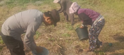 Dalam monitorong tersebut Bhabinkamtibmas memeriksa kondisi lahan jagung dan melaksanakan penanaman jagung dilahan tersebut kemudian menghimbau agar terus melakukan perawatan dan pemberian pupuk yang diberikan pemerintah untuk mendapatkan hasil jagung yang maksimal.