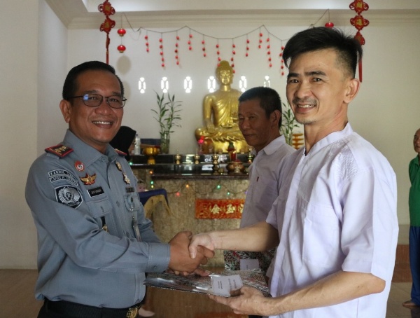 Kepala Lembaga Pemasyarakatan (Kalapas) Kelas II A Pematangsiantar, M. Pithra Jaya Saragih menyerahkan remisi secara simbolis di Vihara Lapas Pematangsiantar kepada narapidana yang memperoleh remisi hari raya Waisak sesuai dengan amanah UU No. 22 Tahun 2022 tentang Pemasyarakatan.
