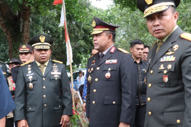 Kapolda Sumatera Utara Inspektur Jenderal Whisnu Hermawan Februanto SIK MH didampingi Kapolres Simalungun AKBP Marganda Aritonang SH SIK ikuti upacara peringatan Hari Kesaktian Pancasila Tahun 2025 di lapangan Tugu Letda Sujono Bandar Betsy, Kecamatan Bandar Huluan, Kabupaten Simalungun, Rabu (1/10/2025).