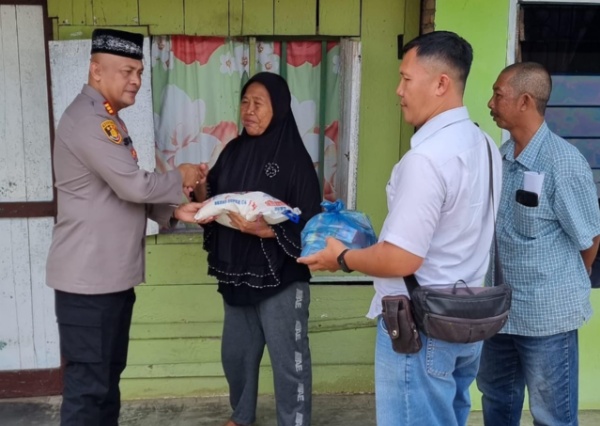 Dalam kegiatan ini, Kapolsek Perdagangan beserta jajarannya membagikan paket sembako kepada Ibu Ponijem, Ibu Tukinah, dan Ibu Sanyiem yang merupakan warga kurang mampu di Lingkungan II, Kelurahan Perdagangan III.