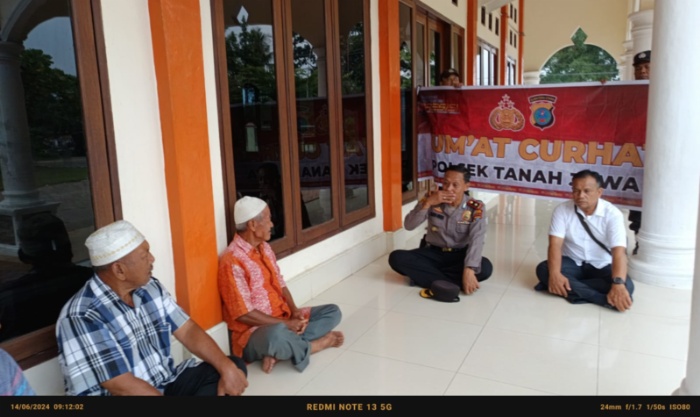 SIMALUNGUN (mimbarsumut.com) – Polsek Tanah Jawa mengadakan kegiatan Jumat Curhat di Mesjid Uswatud Hasanah, Kecamatan Tanah Jawa, Kabupaten Simalungun, Jumat (14/06/2024).