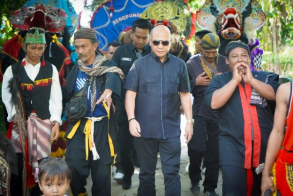 Penyambutan pun dipenuhi seratusan masyarakat desa setempat, termasuk para tokoh masyarakat dan seniman Jawa.
